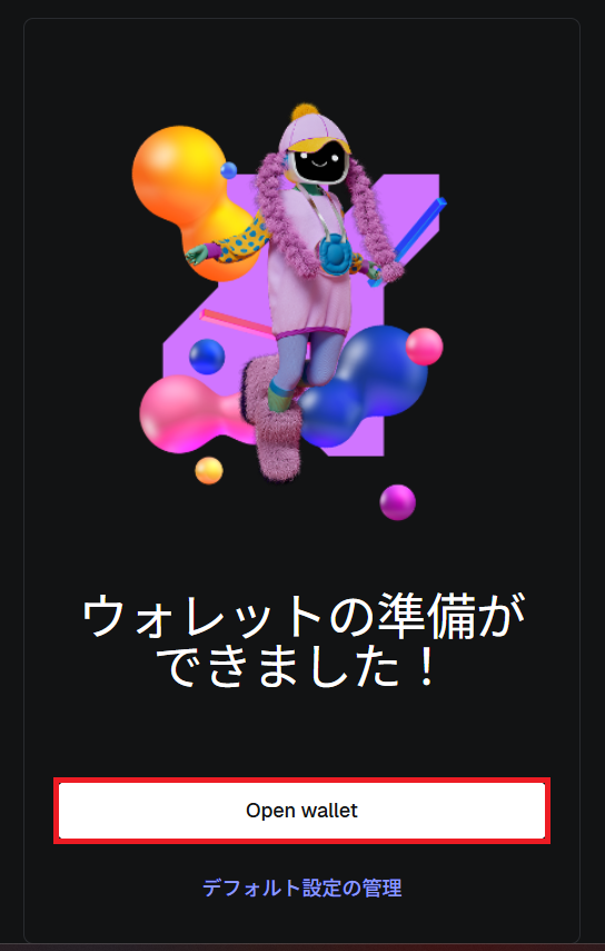 「Open Wallet」ボタンをクリックして次の手順にすすんでください。