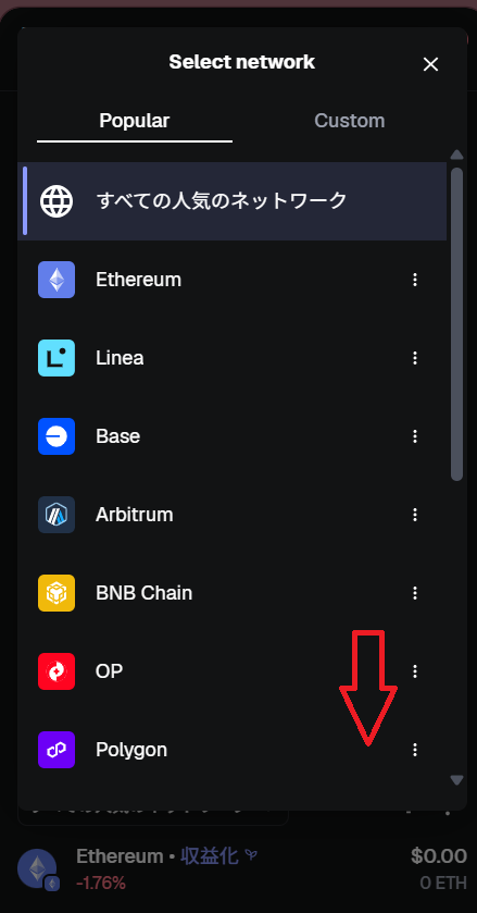 人気のネットワークの一覧が表示されます。下にスクロールしてください。