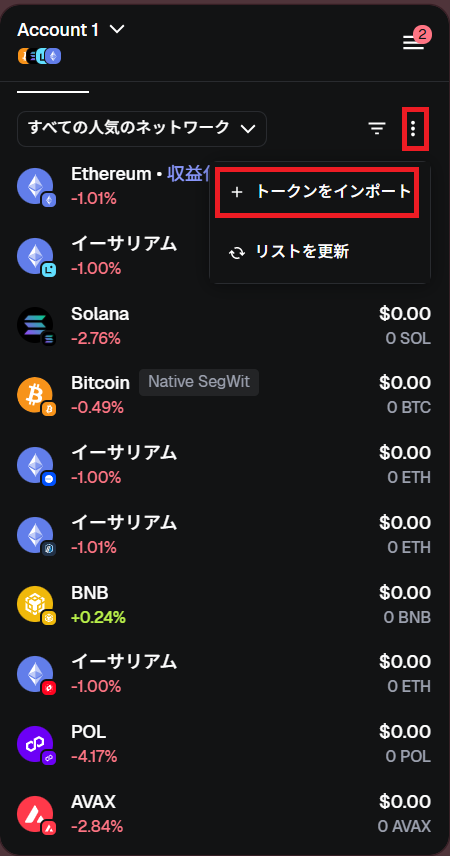 「トークンをインポート」ボタンが表示されますのでクリックしてください。