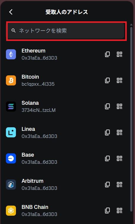 クリップボードにウォレットアドレスがコピーされます。