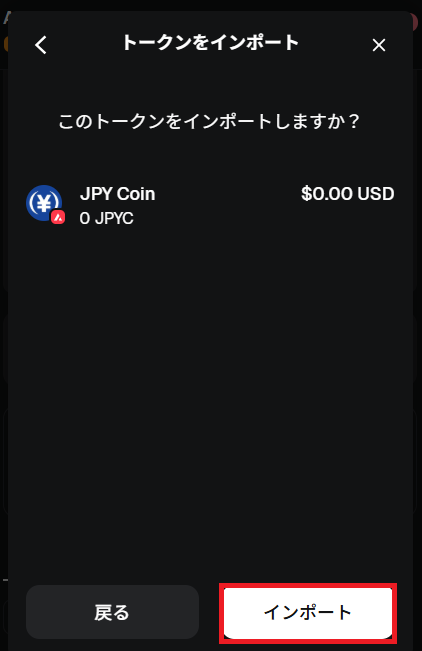 トークンをインポートするか確認画面が表示されます。「インポート」ボタンをクリックしてください。